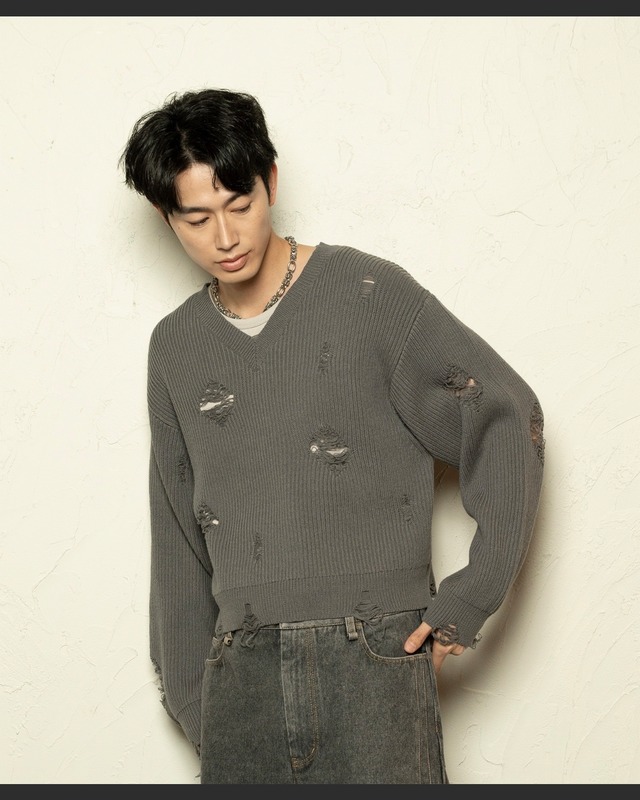 [ Forte ] West Side Modern V-Neck Distressed Knit