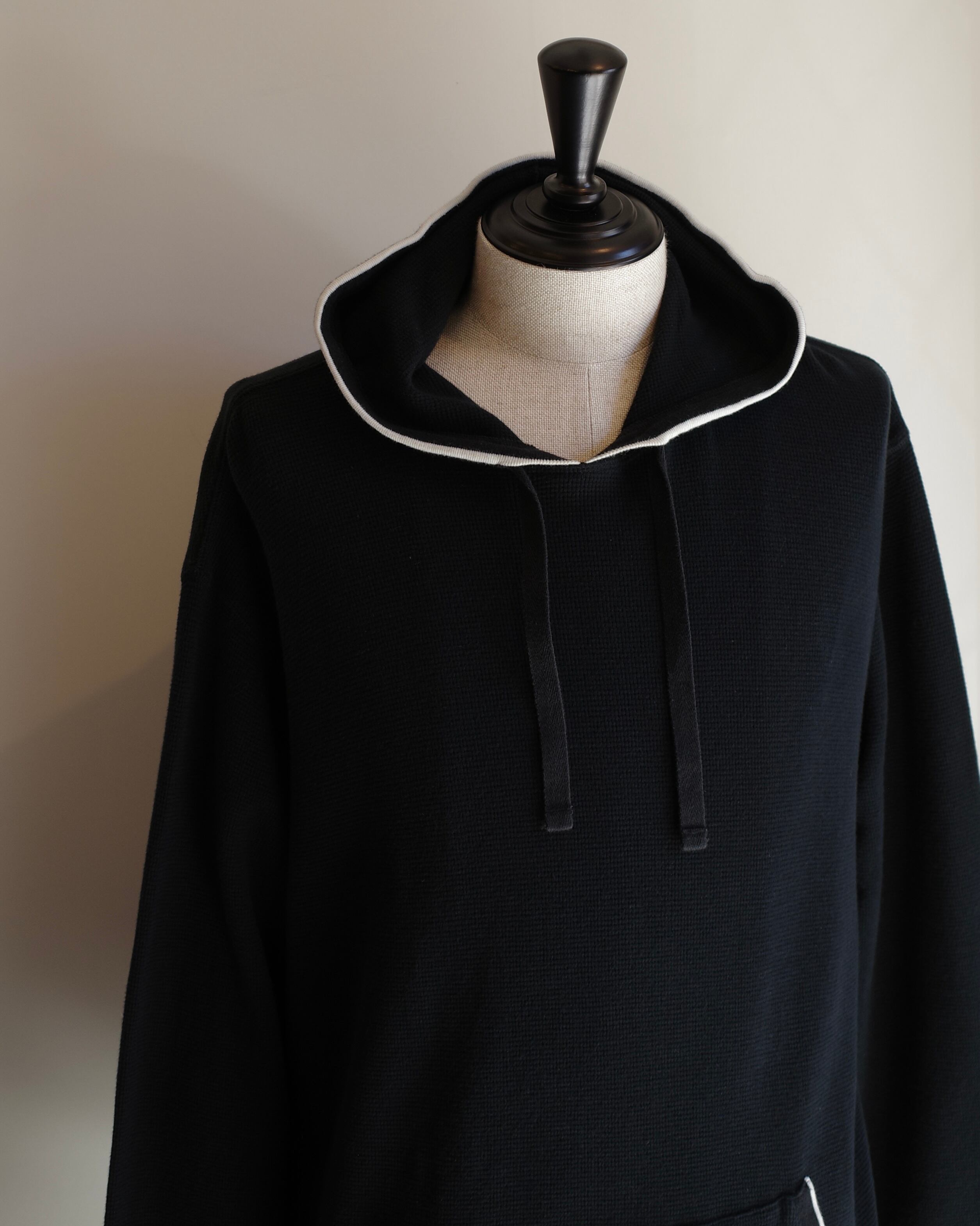ワッフル調のブラックフーディ。
