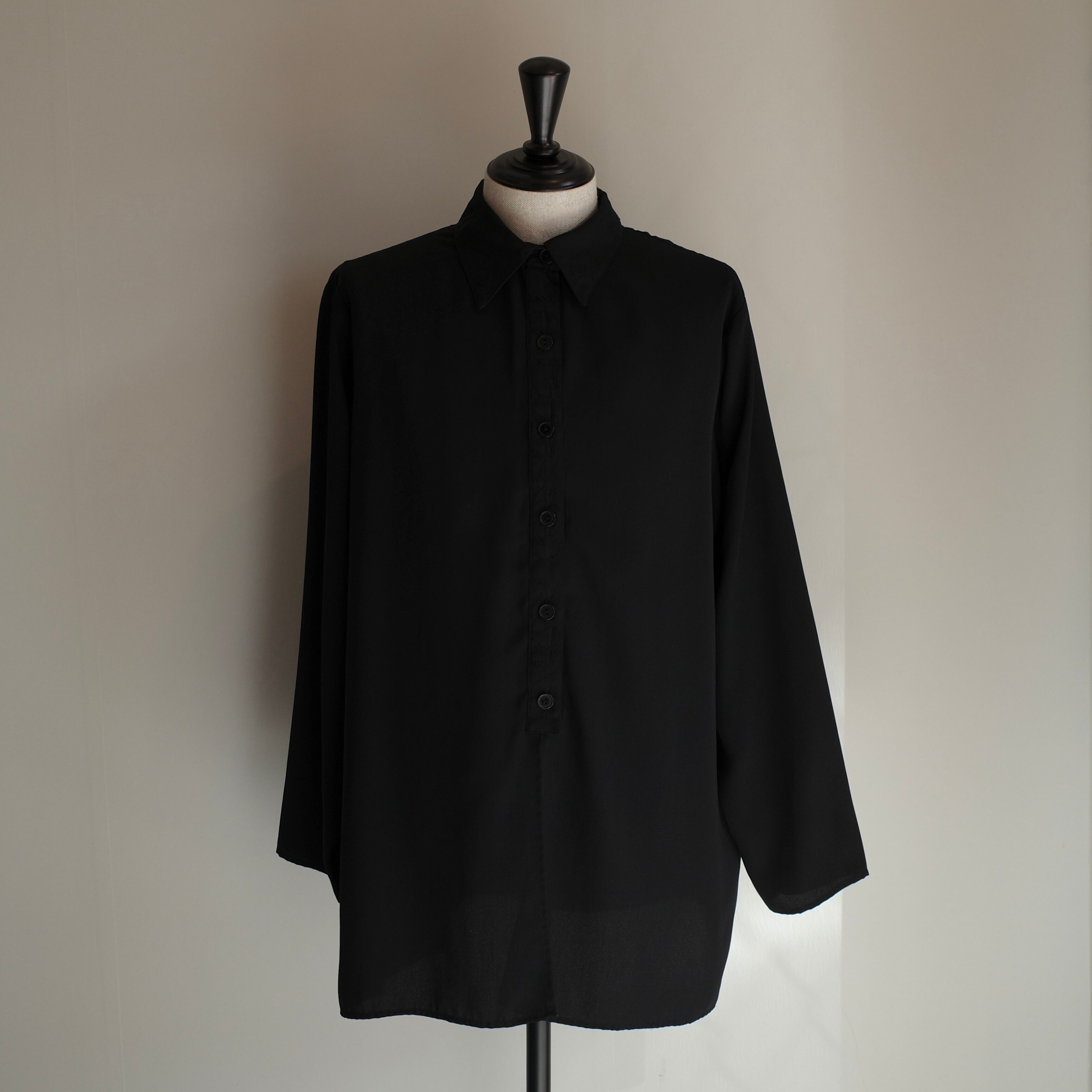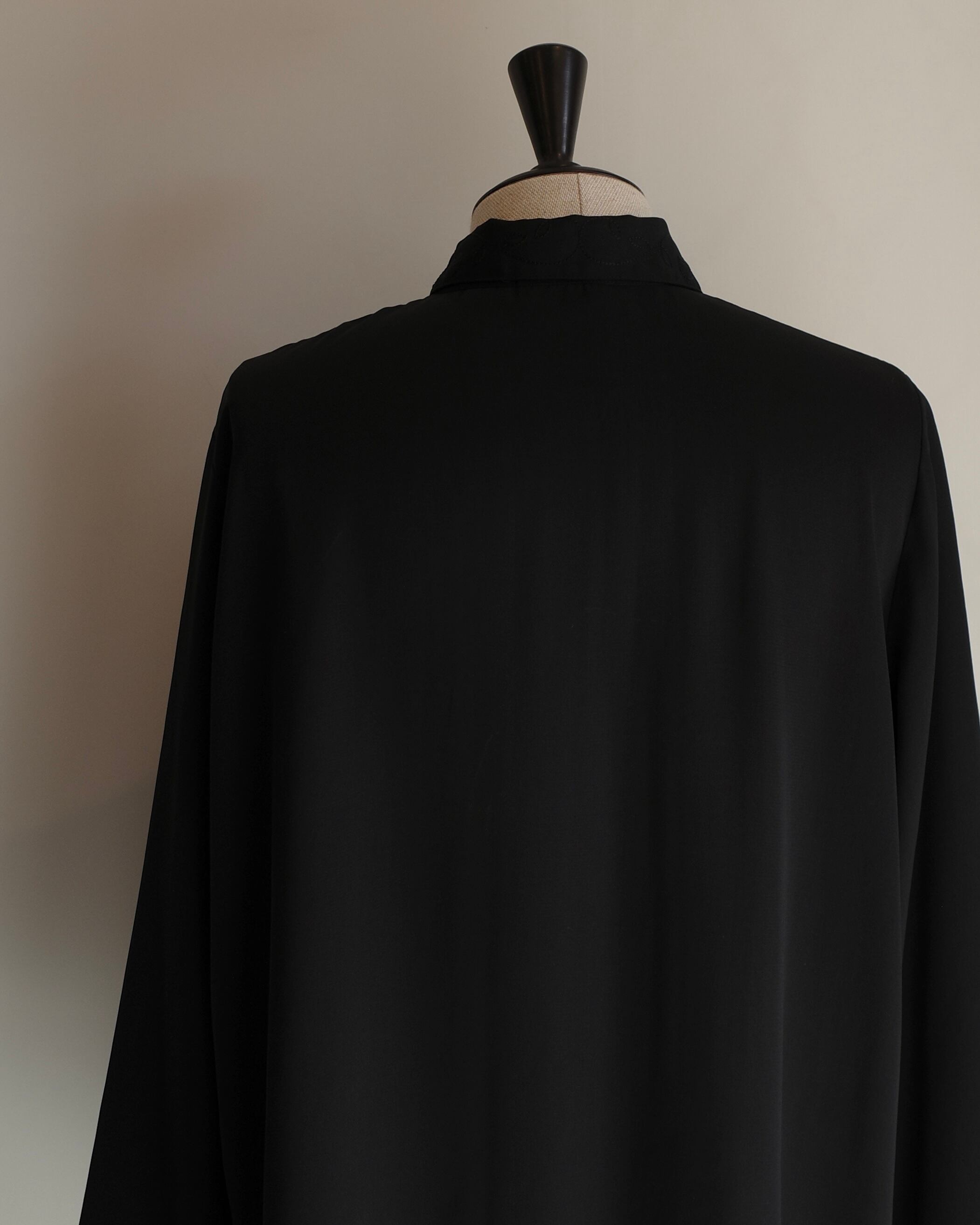 上品な光沢感と落ち感のあるブラックポリエステルシャツ。