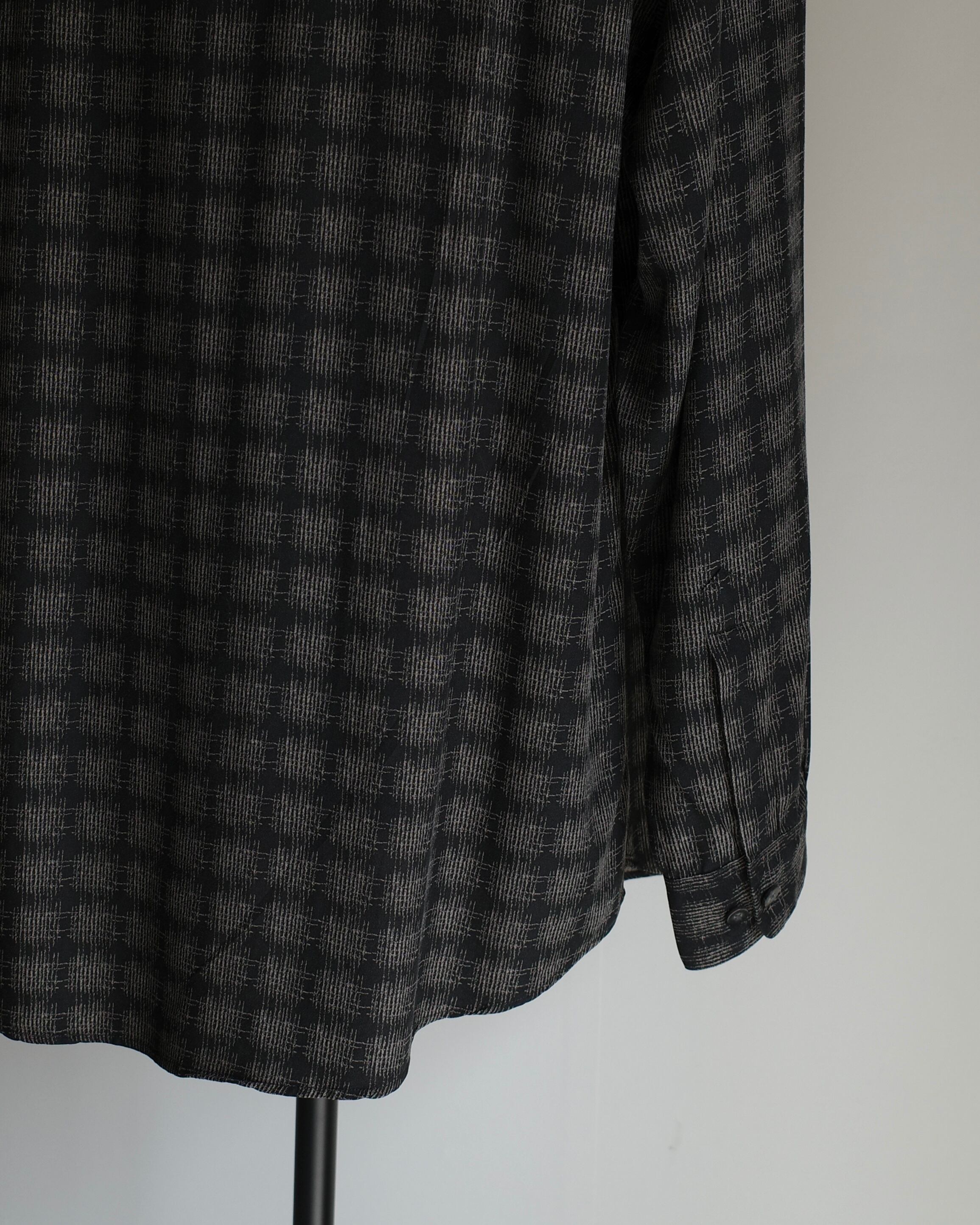 クラシックなシャツシルエットながら、細かく揺れるような線の重なりがモダンな空気感を演出。