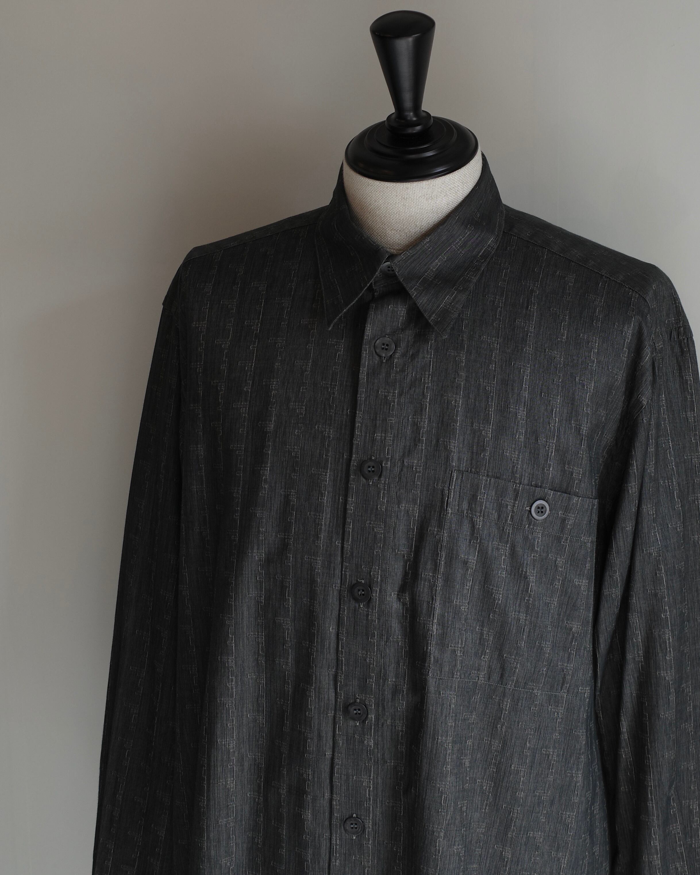 チャコールベースにさりげない織り模様が浮かぶシャドー柄シャツ。