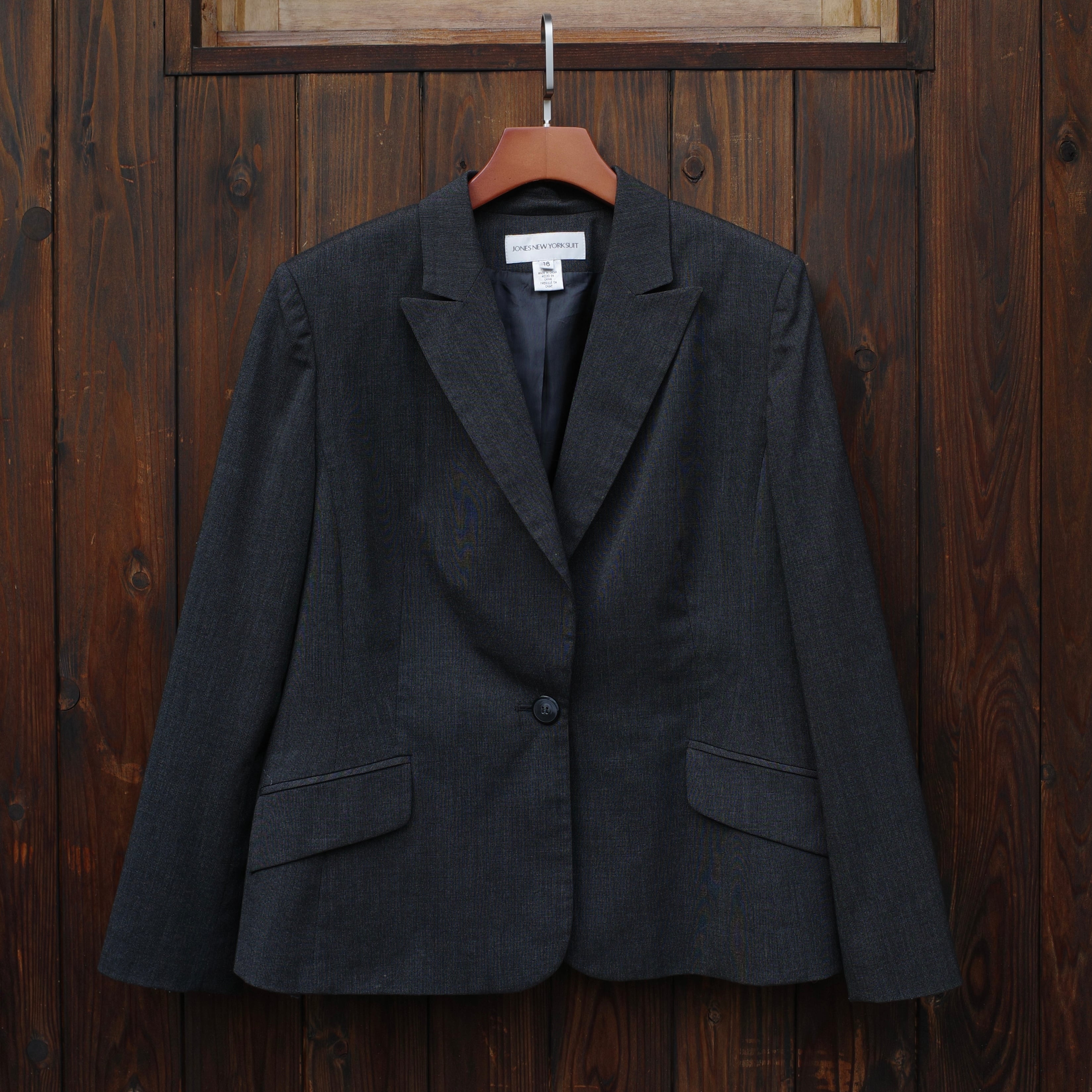 深みのあるチャコールグレーが上品に映える、ベーシックなテーラードジャケット。