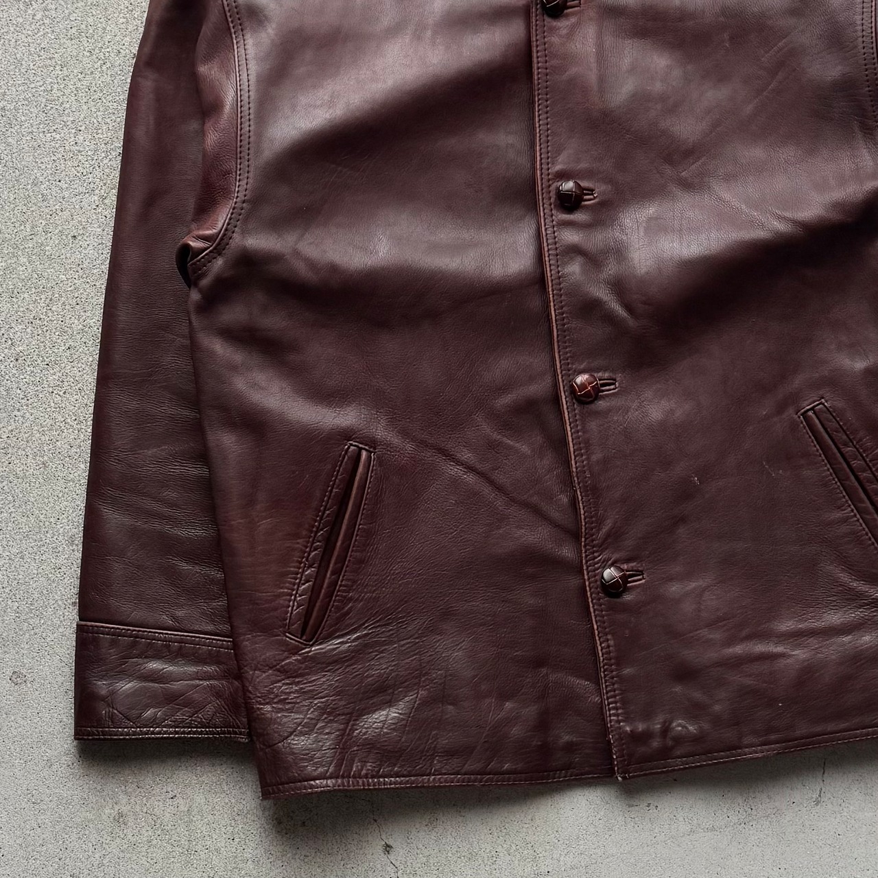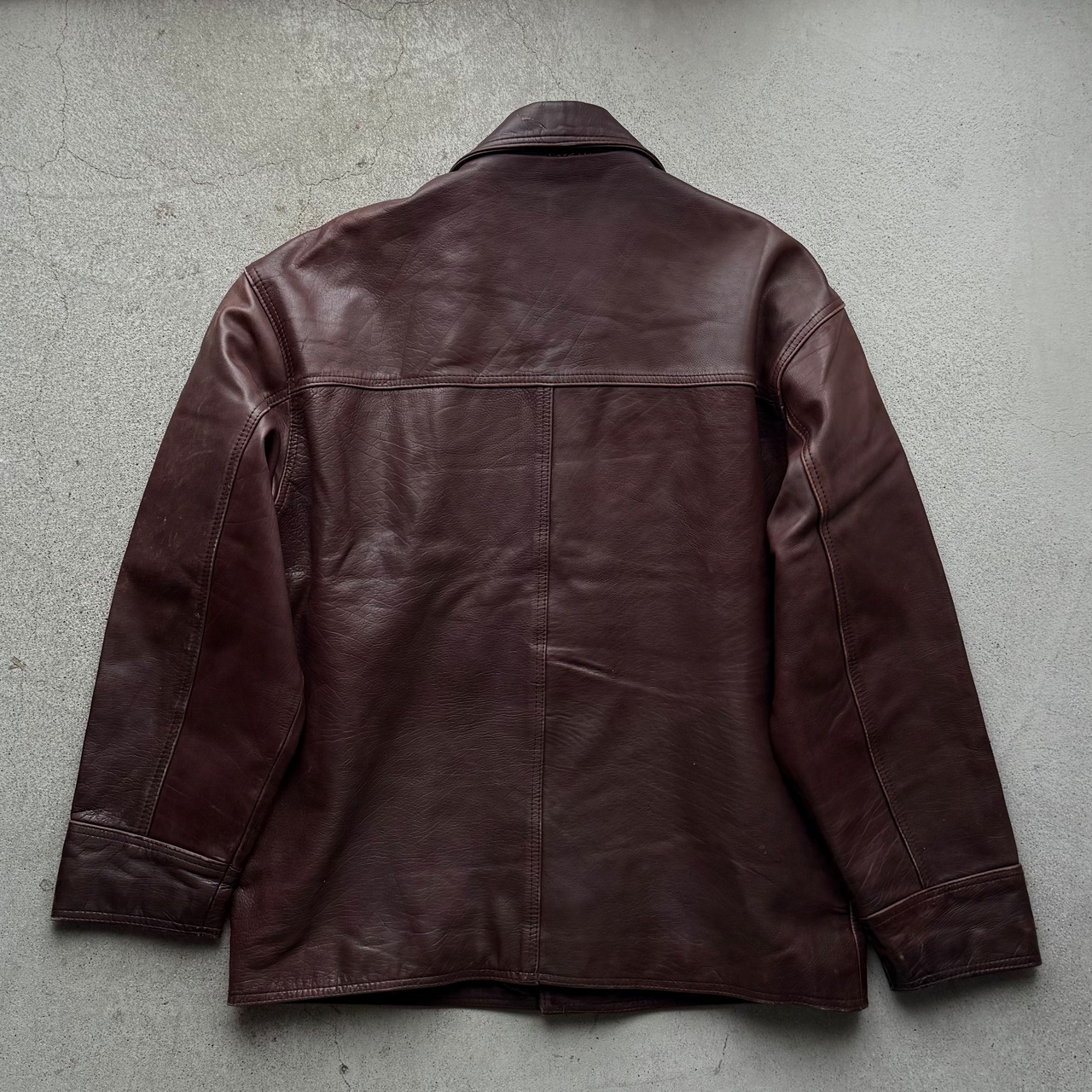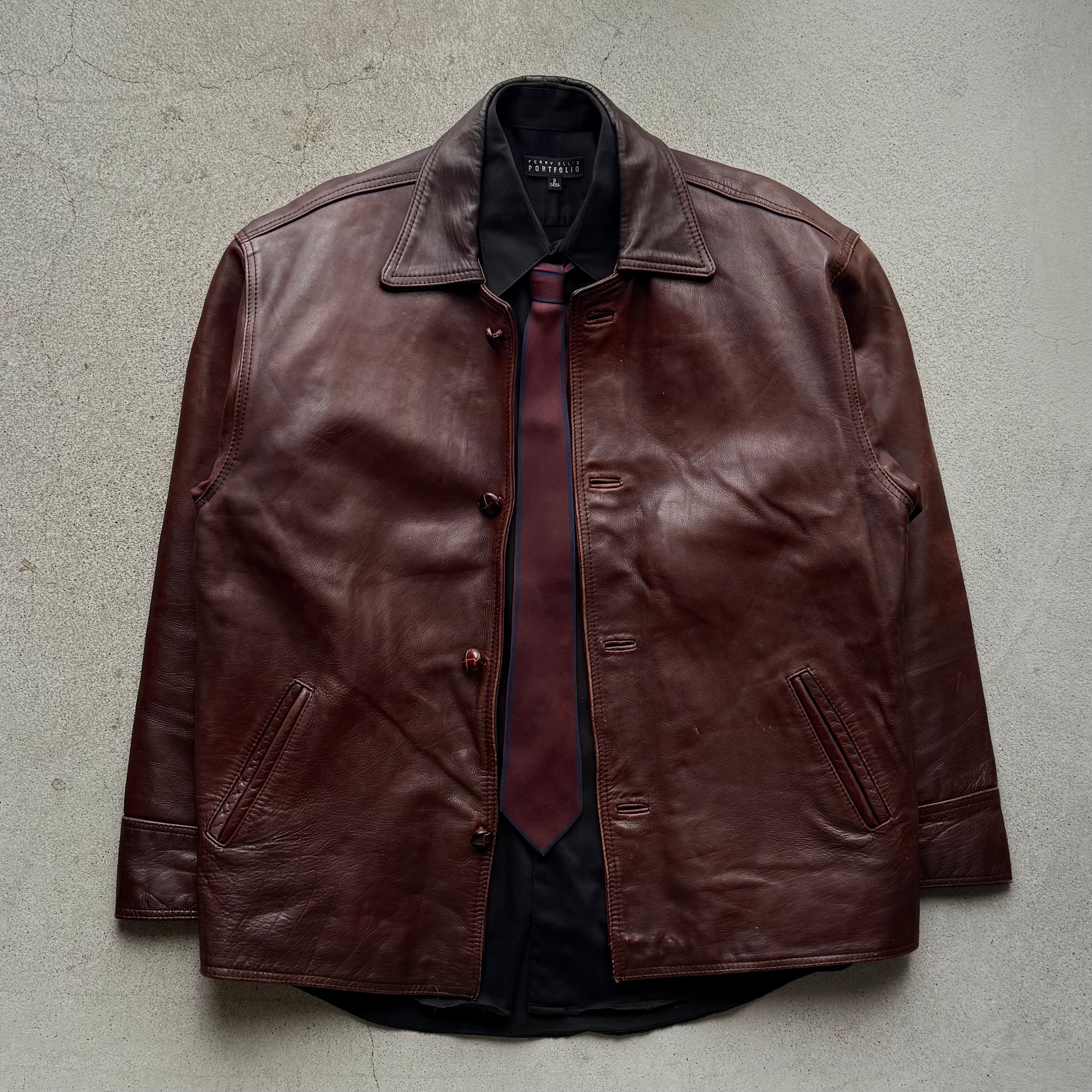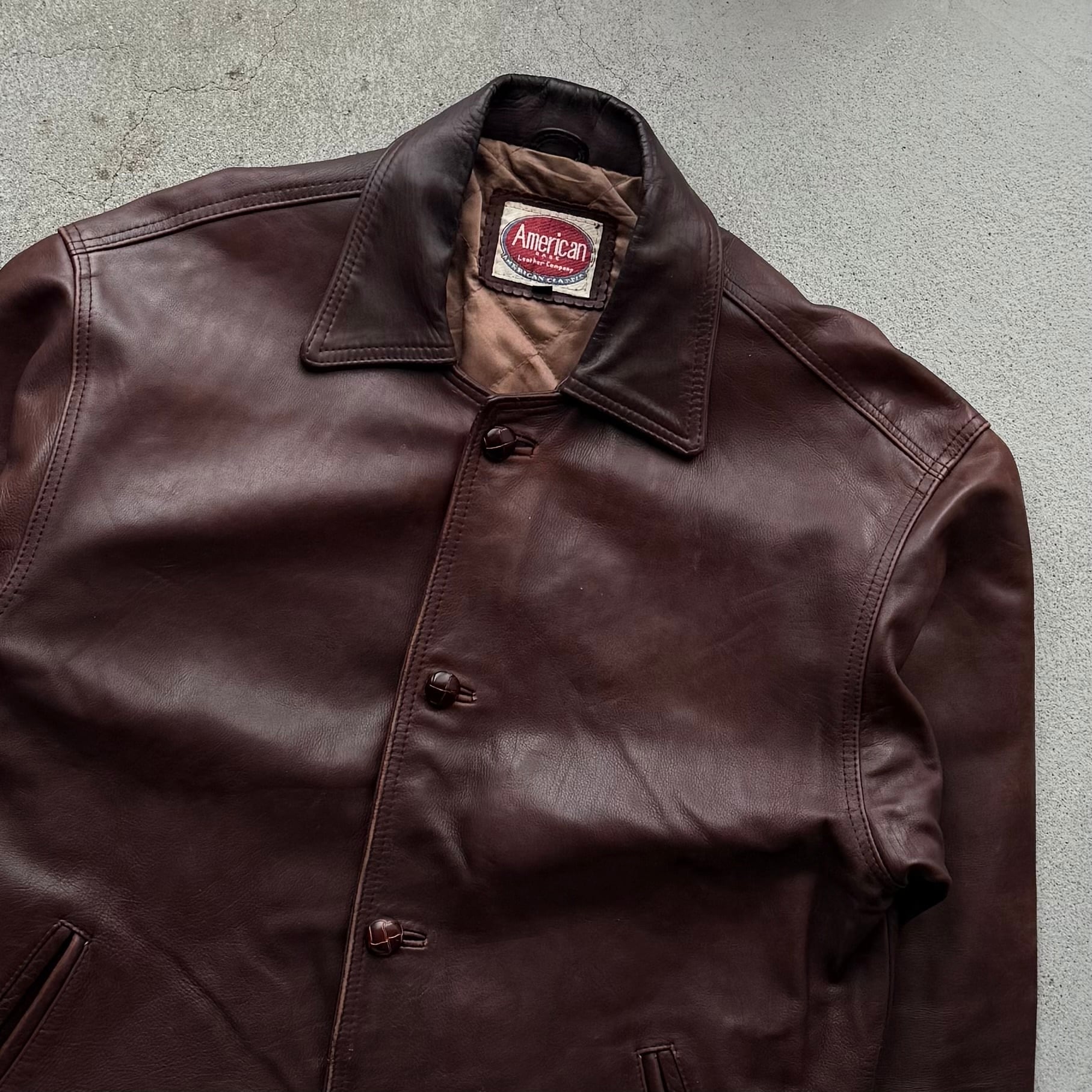 落ち着いたブラウンカラーが魅力のレザージャケット。