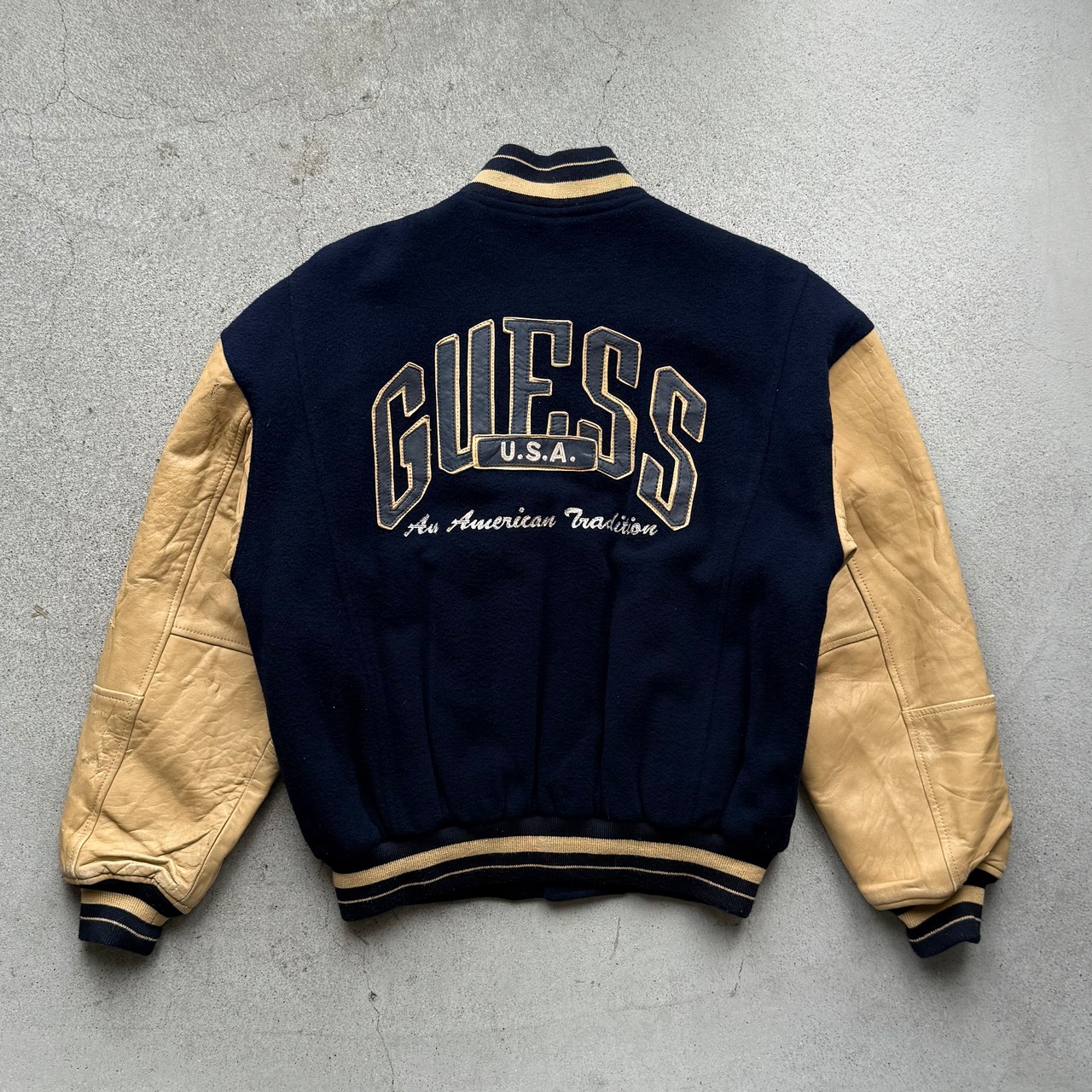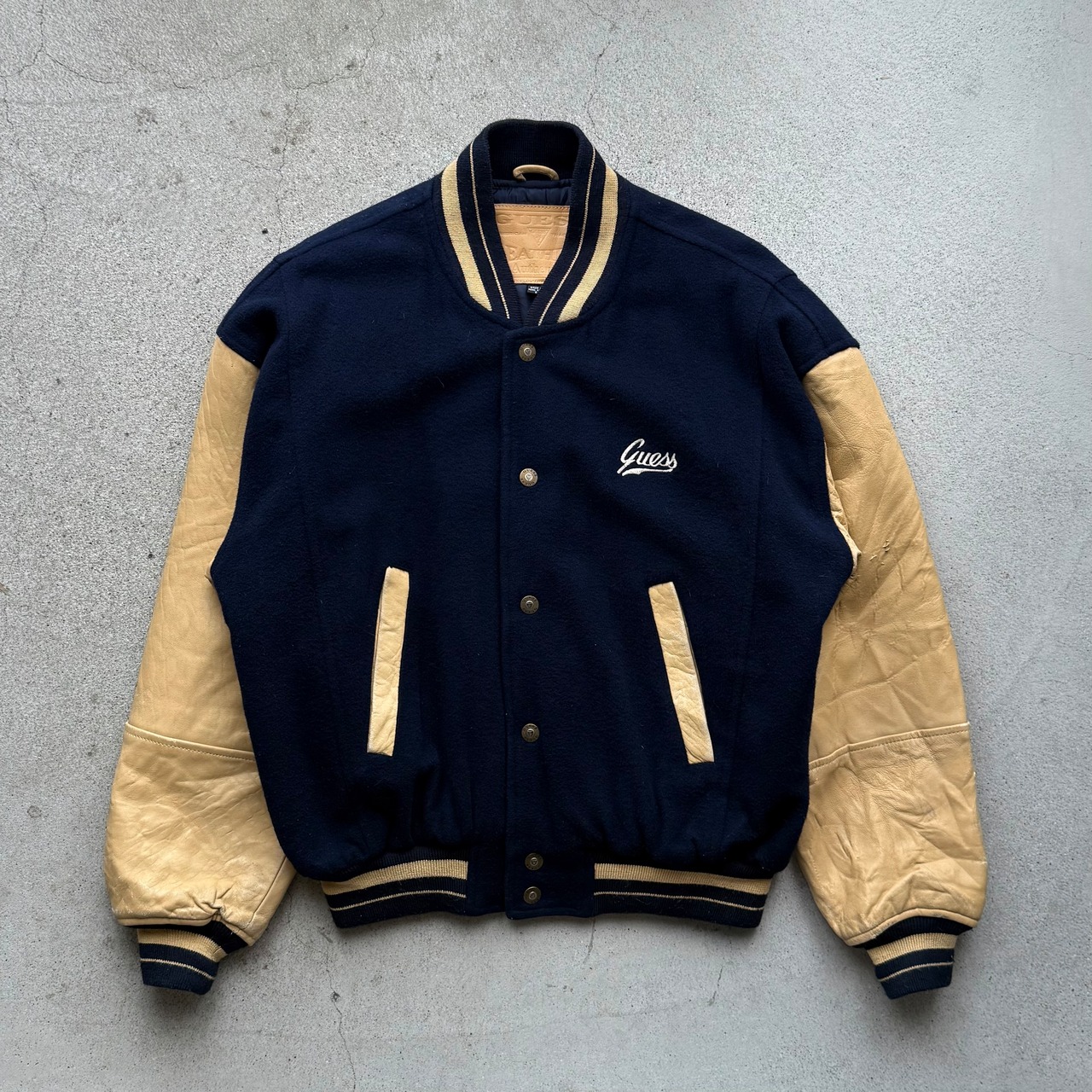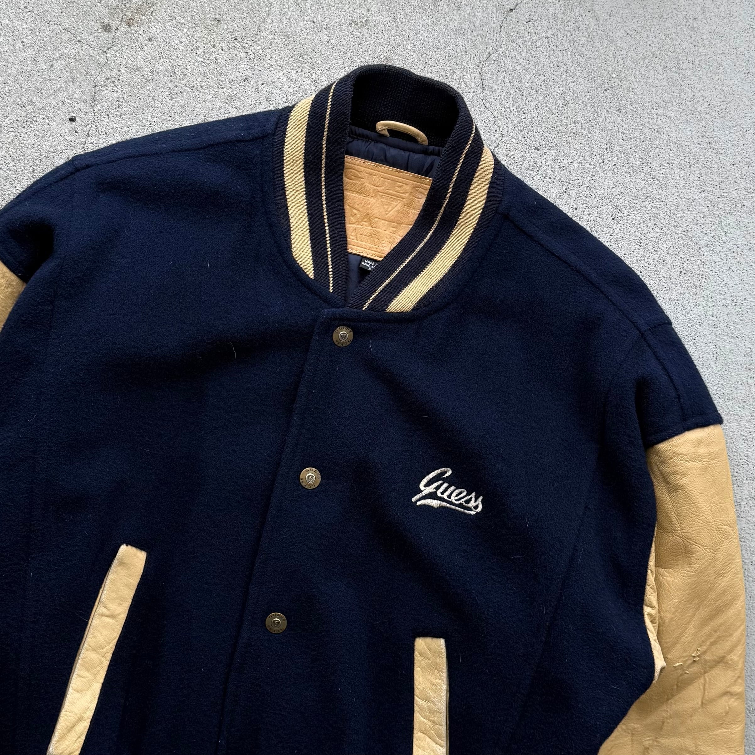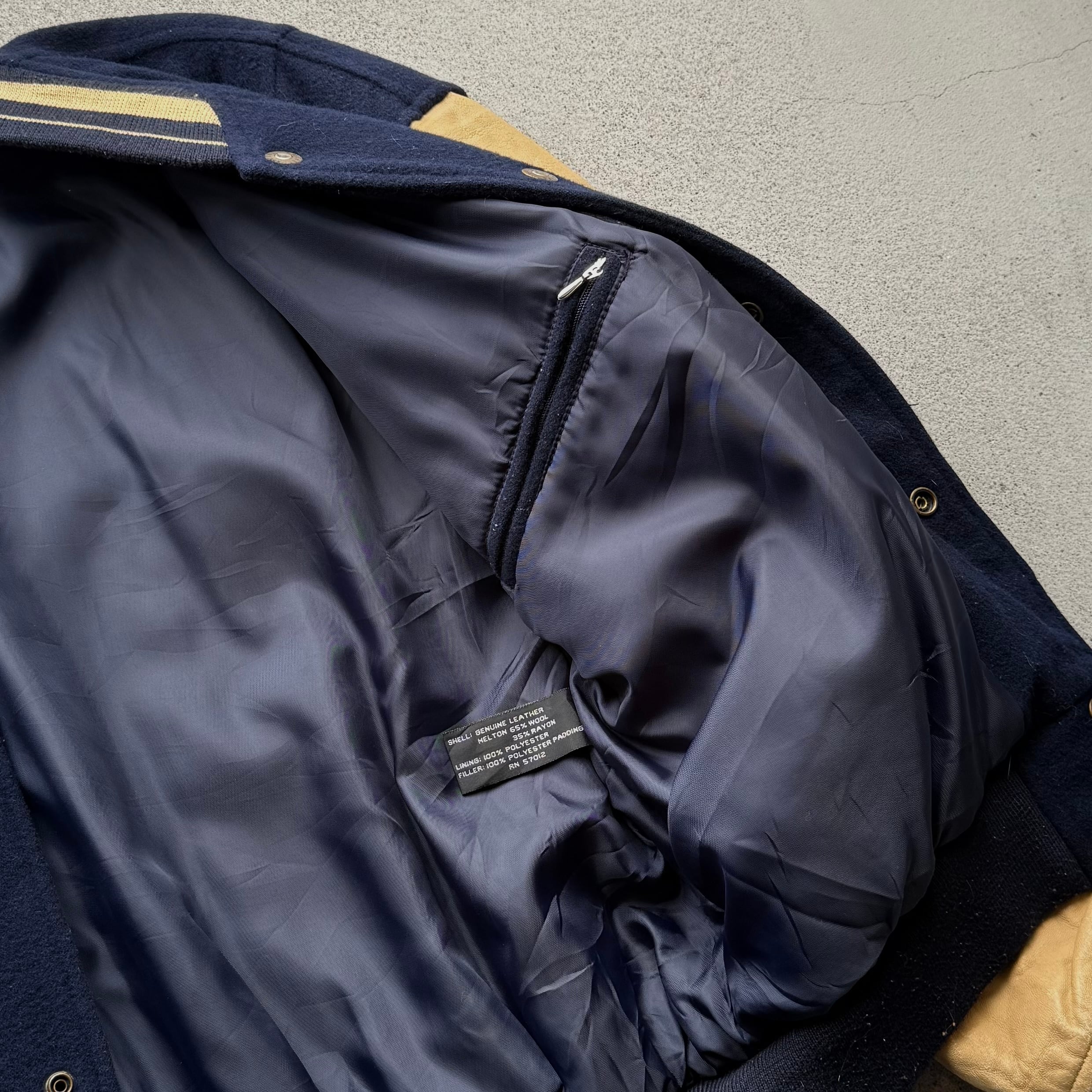 ネイビー×ベージュの切り替えが映えるヴィンテージ感あるスタジャン。