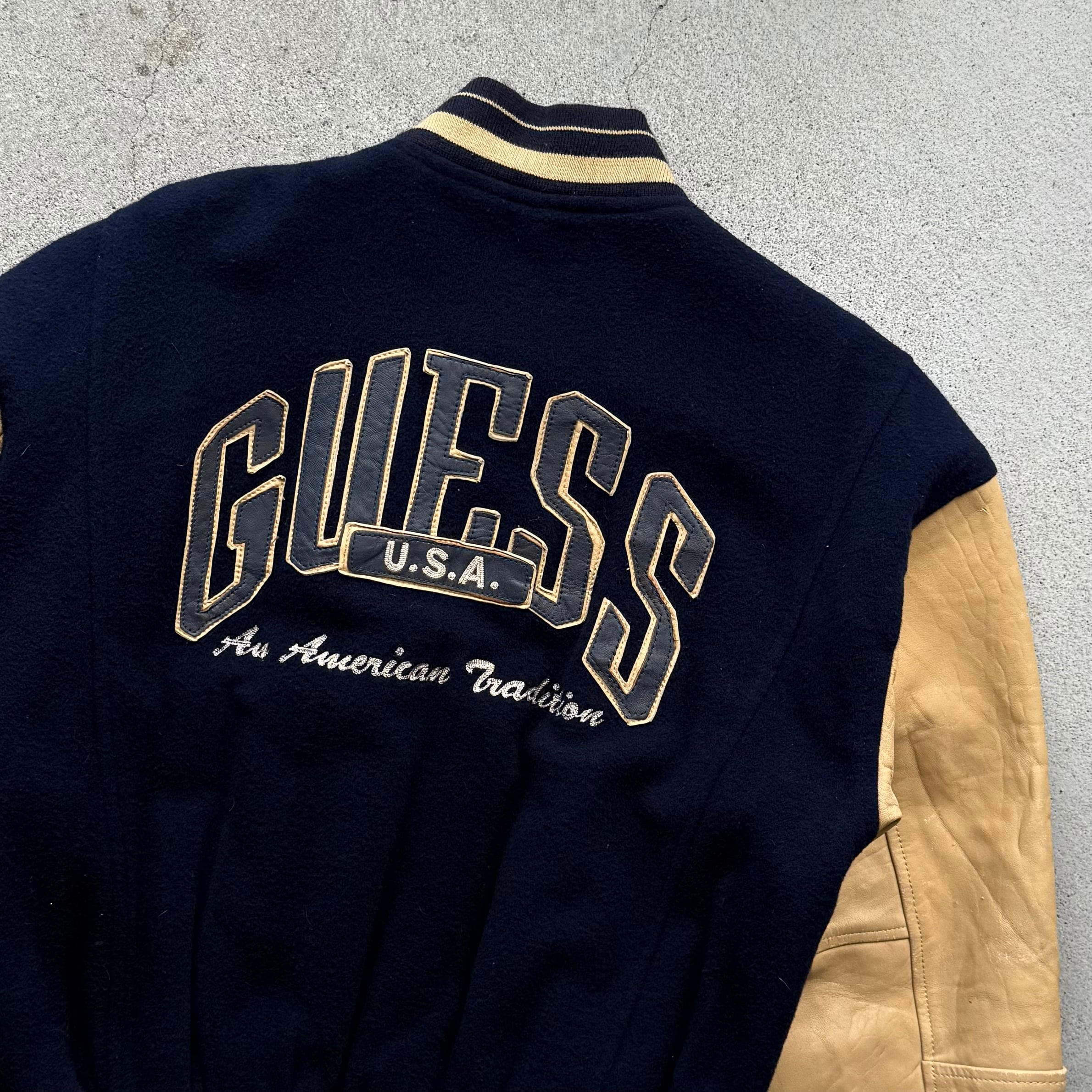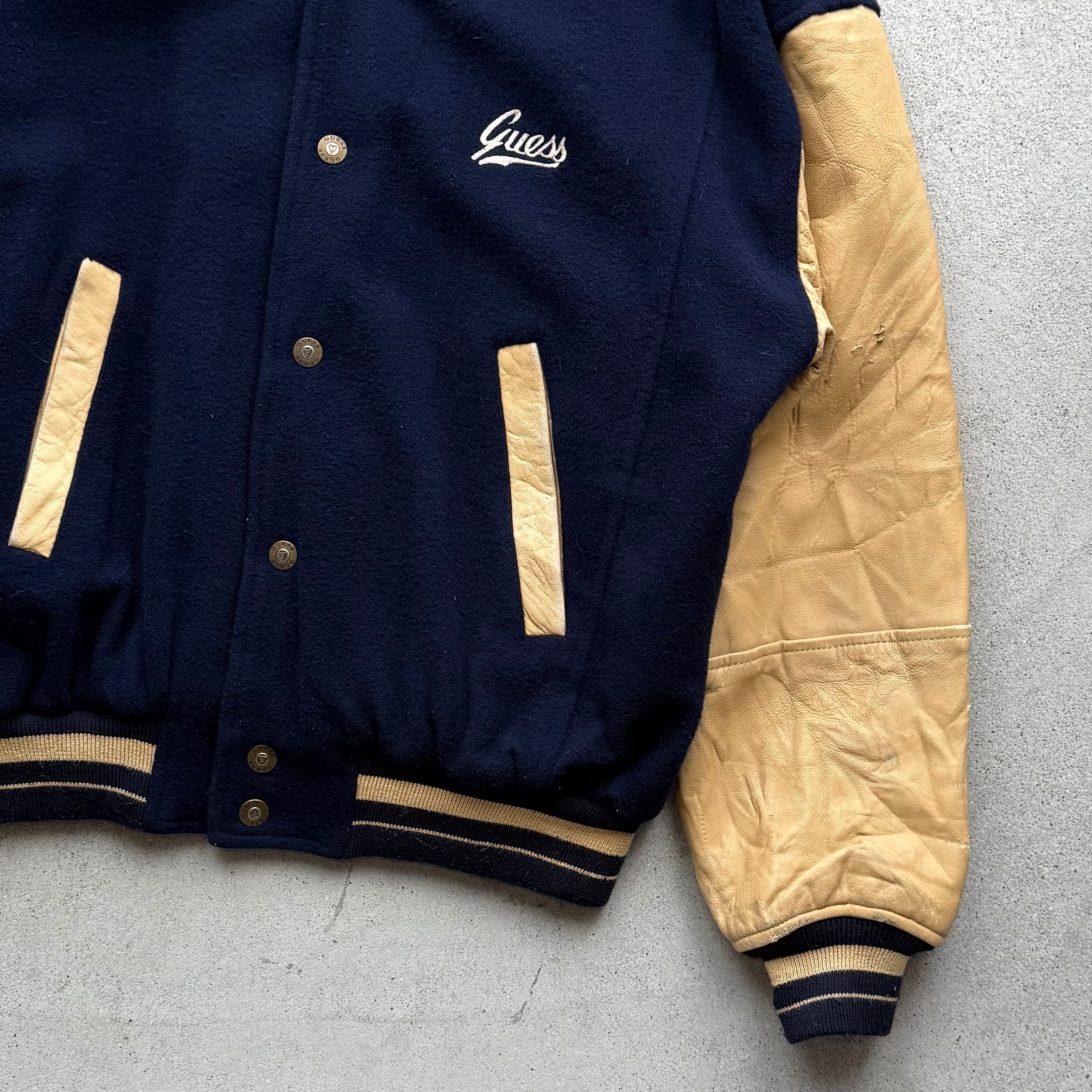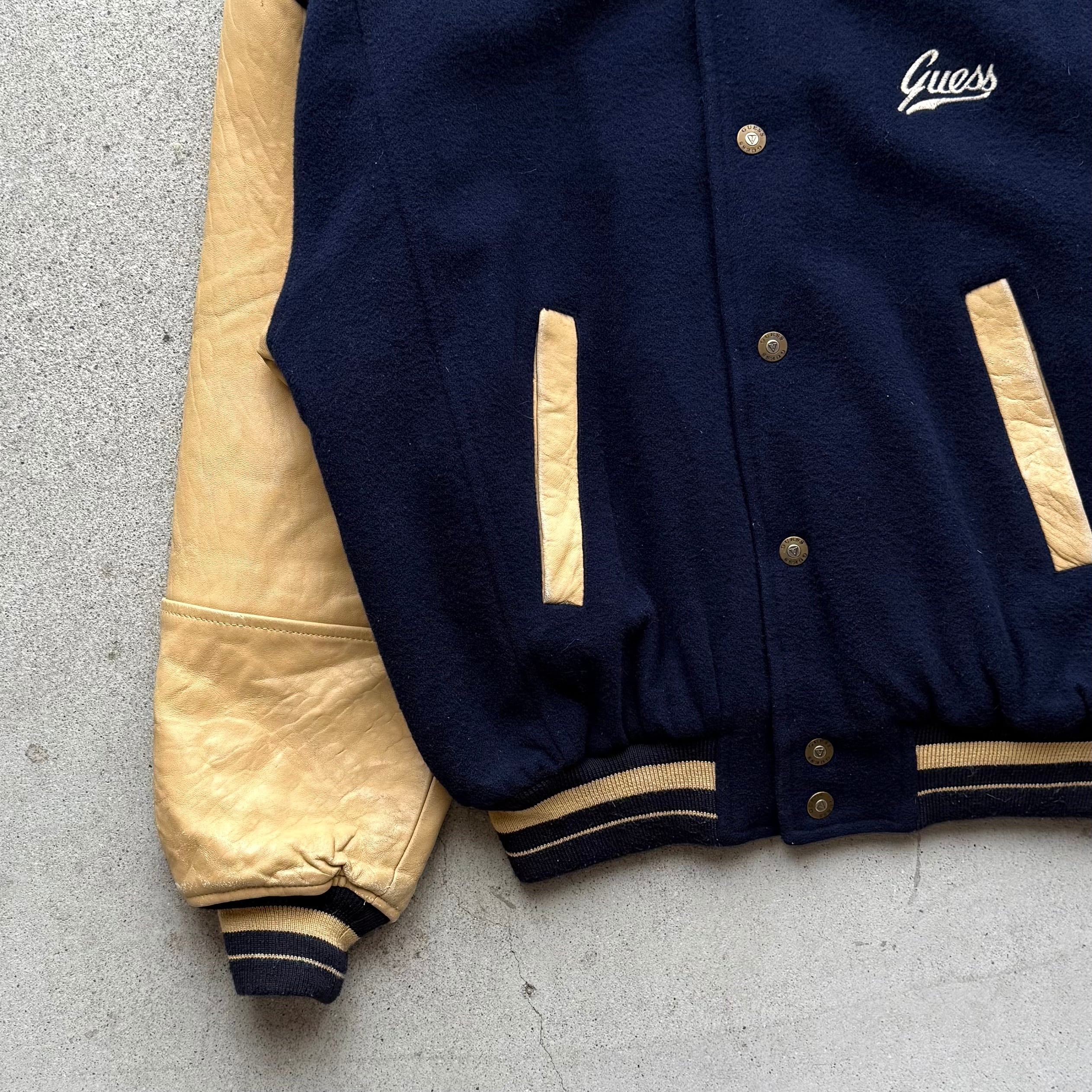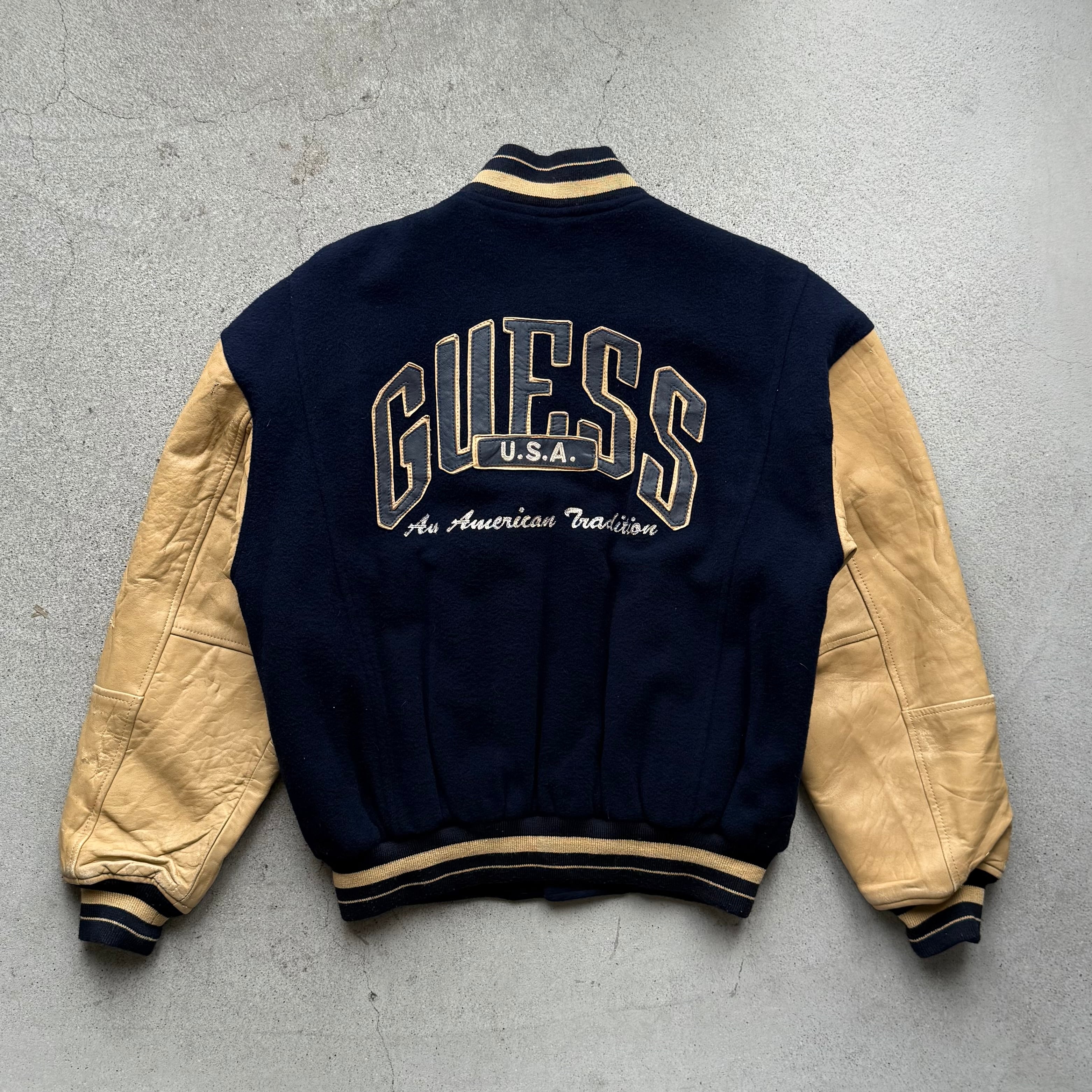 ネイビー×ベージュの切り替えが映えるヴィンテージ感あるスタジャン。