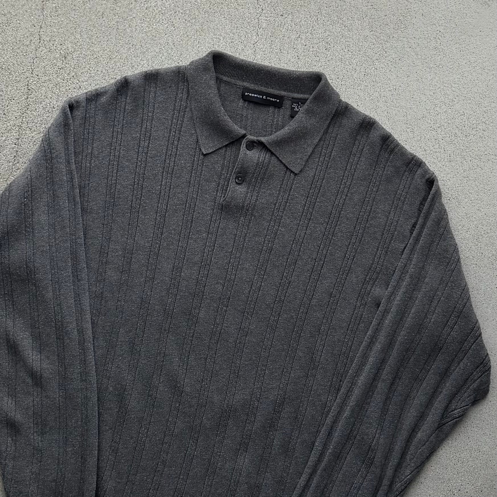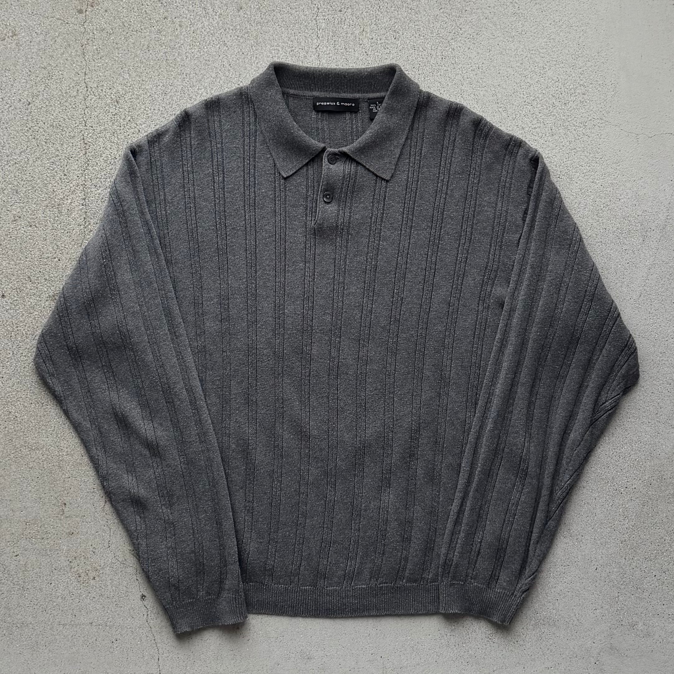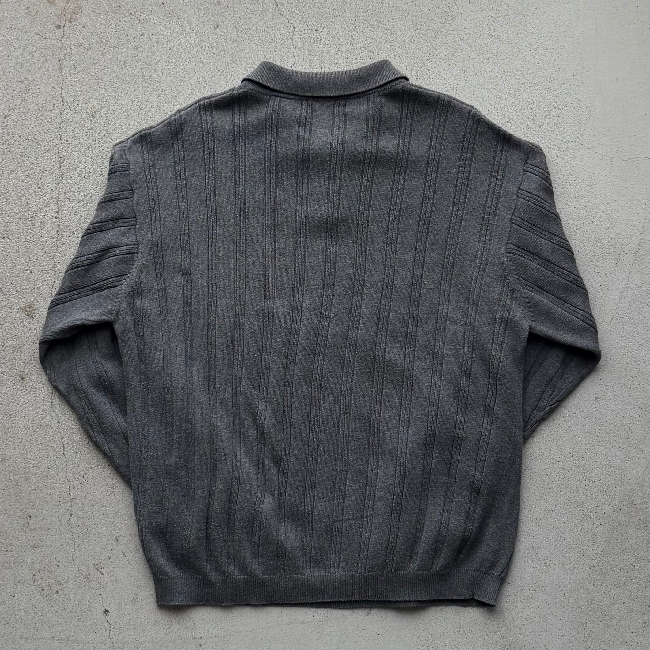 グレーカラーのリブ編みニットポロ。
