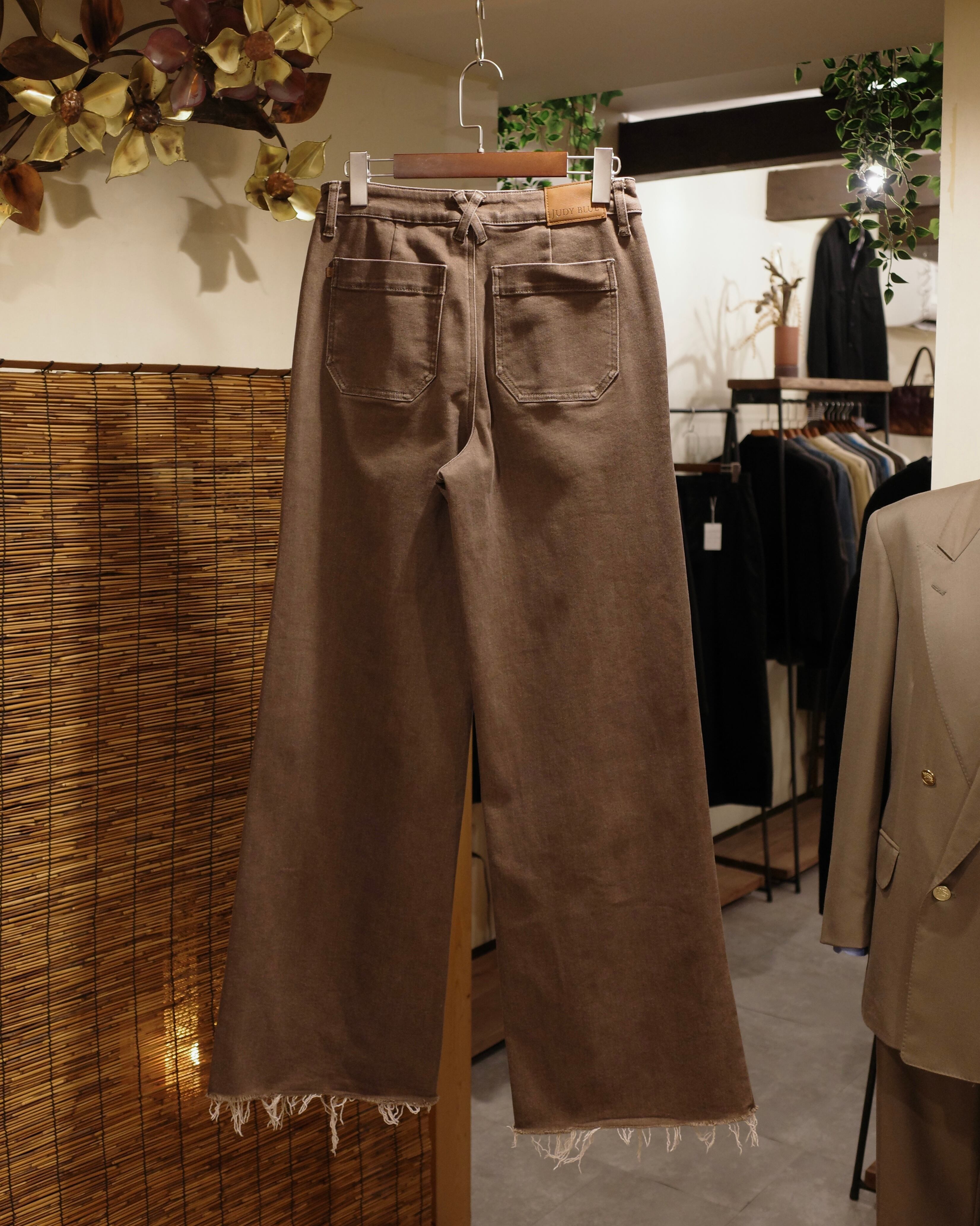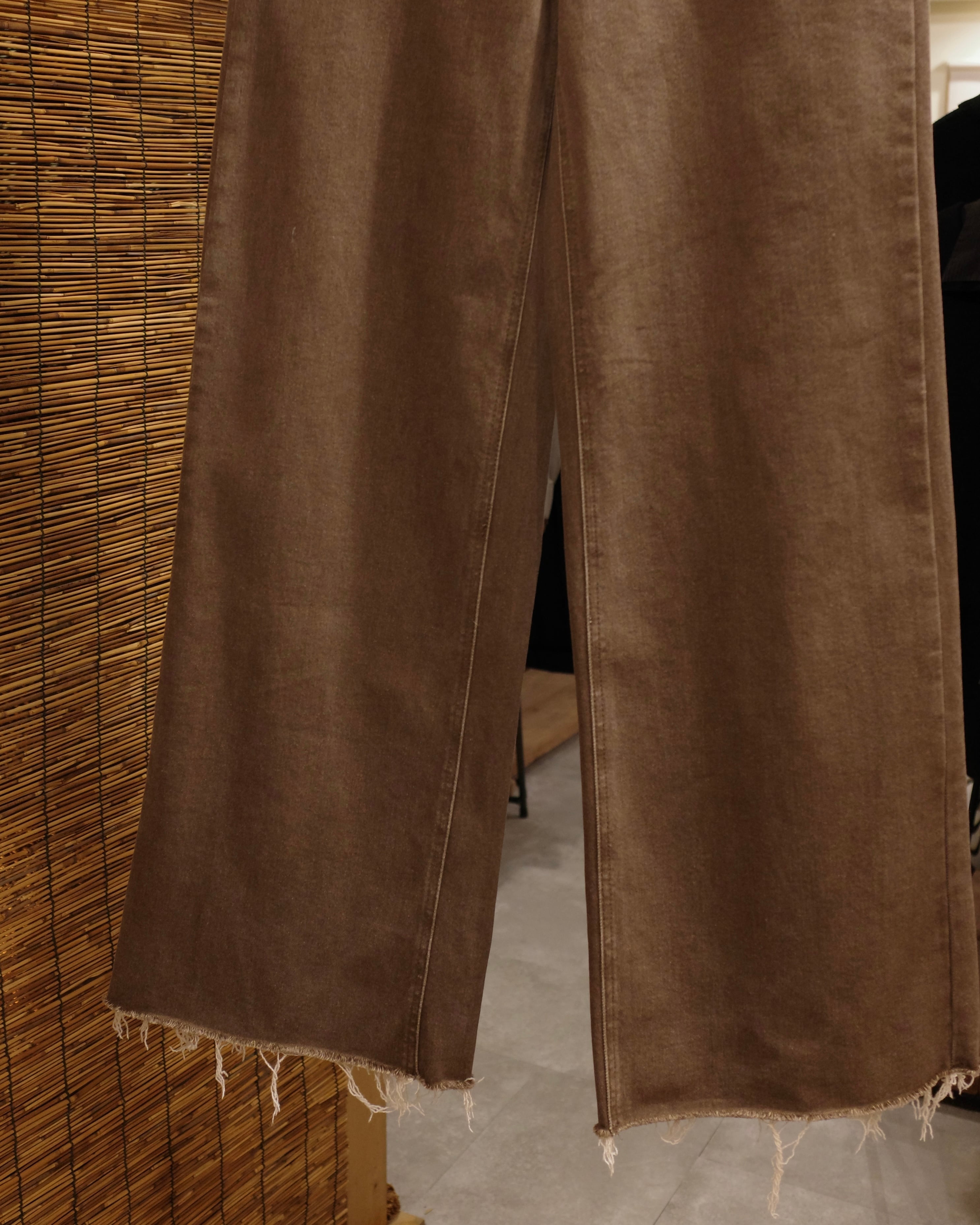 カットオフやポケットのディテールがポイントですが、そもそもブラウンは珍しい、、